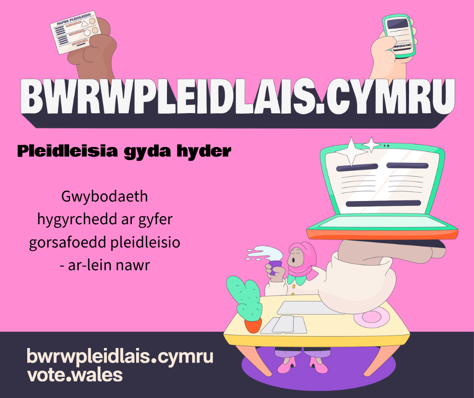- Tro dy bryder pleidleisio yn hyder pleidleisio gyda bwrwpleidlais.cymru / Turn voting confusion into voting confidence with vote.wales